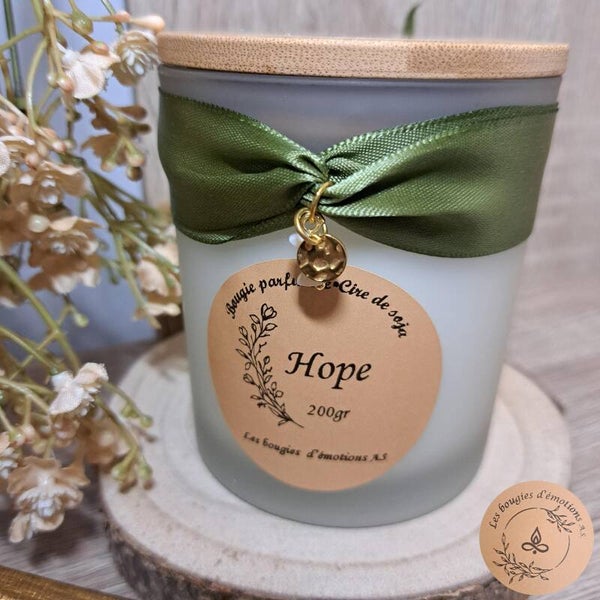 Bougie parfum création "Hope", à la cire de soja et parfum de qualité supérieure de Grasse certifié sans phtalates, CMR, vegan, sans cruauté animal .