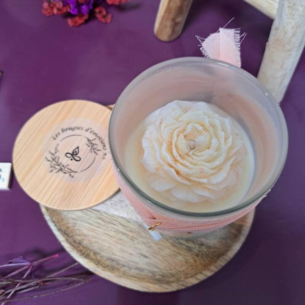 Bougie à la cire de soja 215g, Parfum de Grasse de haute qualité, sans CMR, phtalates, vegan, sans cruauté animal.
